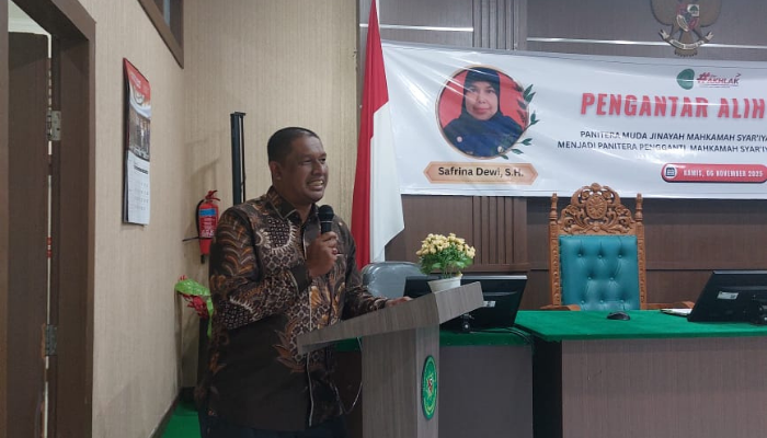 ms-bireuen.go.id | Mahkamah Syar’iyah Bireuen Kelas IB melaksanakan Acara Pengantar Alih Tugas pada Kamis, 6 November 2025 M bertepatan dengan 15 Jumadil Awal 1447 H. Kegiatan yang berlangsung di Ruang Sidanh Utama Mahkamah Syar’iyah Bireuen Pukul 15.00 WIB ini digelar dalam suasana penuh haru untuk melepas Ibu Safrina Dewi, S.H., yang sebelumnya menjabat sebagai Panitera Muda Jinayah, dan akan melanjutkan pengabdian sebagai Panitera Pengganti pada Mahkamah Syar’iyah Banda Aceh Kelas IA.