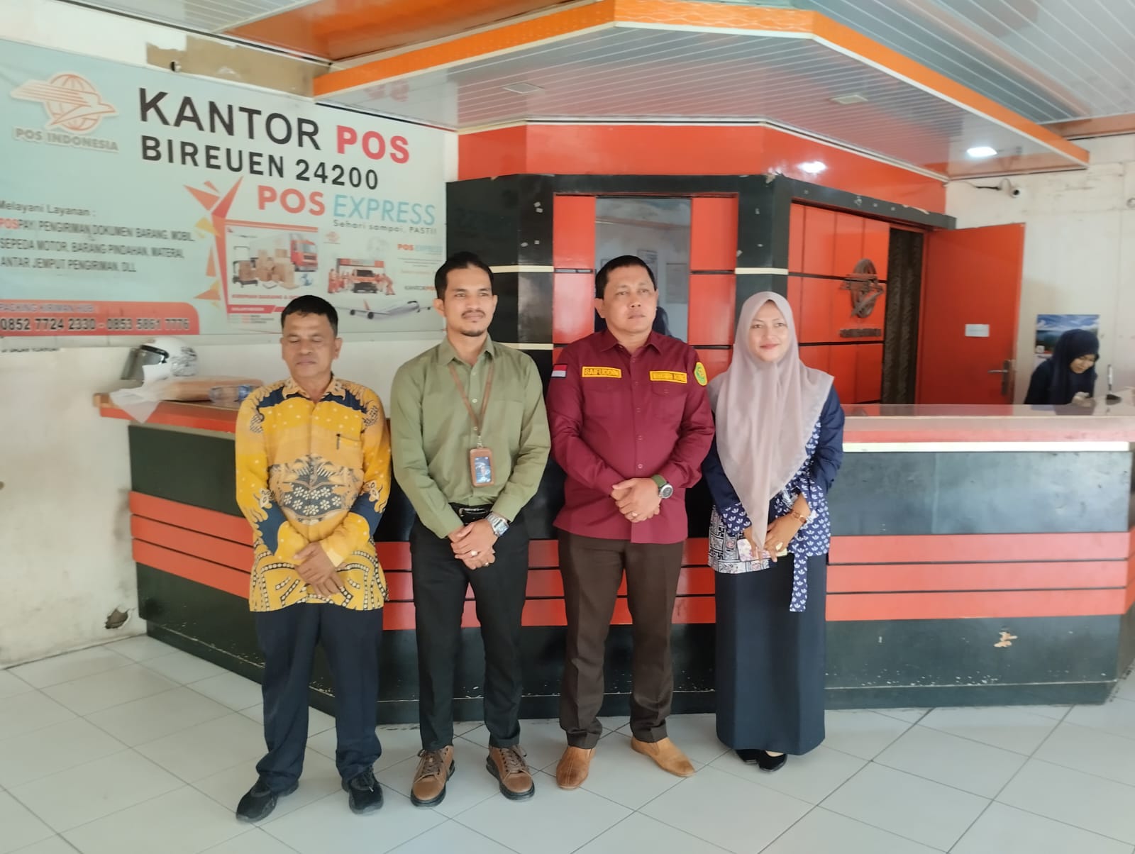 ms-bireuen.go.id | Bireuen, 22 Januari 2026 — Pada hari Kamis, 22 Januari 2026, pukul 10.00 WIB, Panitera Mahkamah Syar’iyah Bireuen, Bapak Saifuddin, S.Ag., M.H., didampingi oleh Jurusita Bapak Idris, S.H., dan Bendahara Ibu Safrina, S.E., mengadakan kunjungan silaturrahmi dan koordinasi dengan pimpinan PT. Pos Bireuen di kantor PT. Pos Kota Juang Bireuen. Kunjungan ini bertujuan untuk meningkatkan kualitas pelayanan kepada masyarakat, khususnya dalam hal pengiriman dokumen peradilan yang lebih efisien.