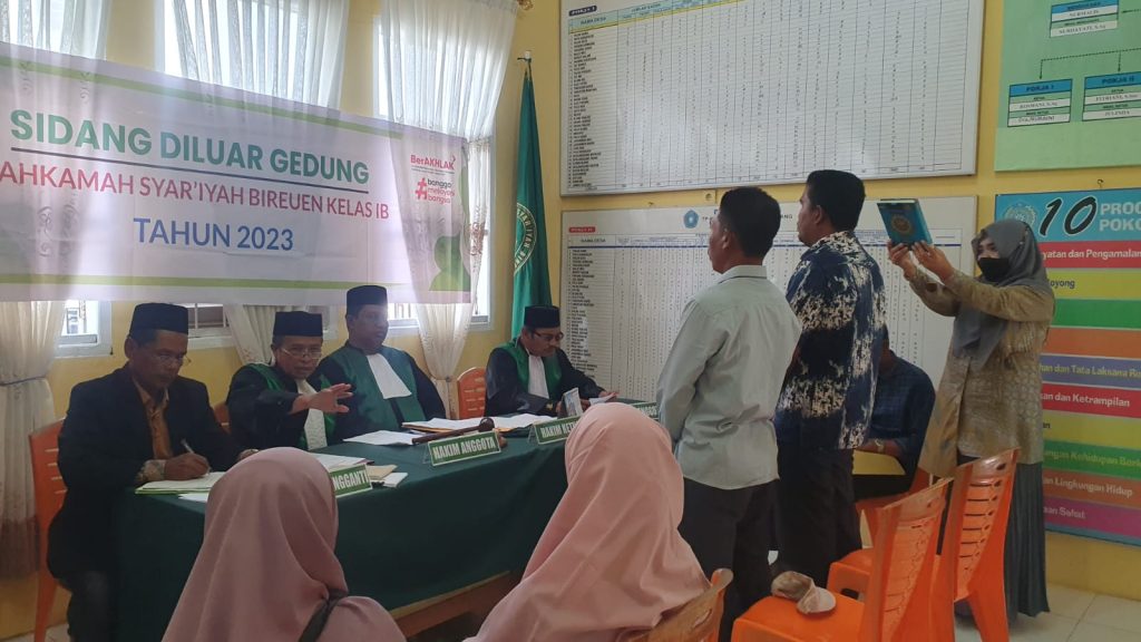 ms-bireuen.go.id | Jumat, 10 Februari, 2023, Mahkamah Syar’iyah Bireuen Kelas IB kembali gelar sidang diluar gedung (sidang keliling) di Kecamatan Kuta Blang. Tim sidang keliling pada hari ini terdiri dari Ketua Majelis Hakim yaitu M. Syauqi S.H.I., S.H., M.H. dua anggota Majelis Hakim yaitu Drs. M.Wali Syam, dan Drs Syardili, dua Hakim mediator yakni Siti Salwa S.H.I., M.H dan M. Yusuf, S.H.I M.H dan didampingi oleh Khalidah S.Ag M.H Panitera dan Sabri, S.H sebagai Panitera Pengganti serta petugas sidang Cut Farida Hanum S.Ag dan Rizky Hidayat Mizan SH.